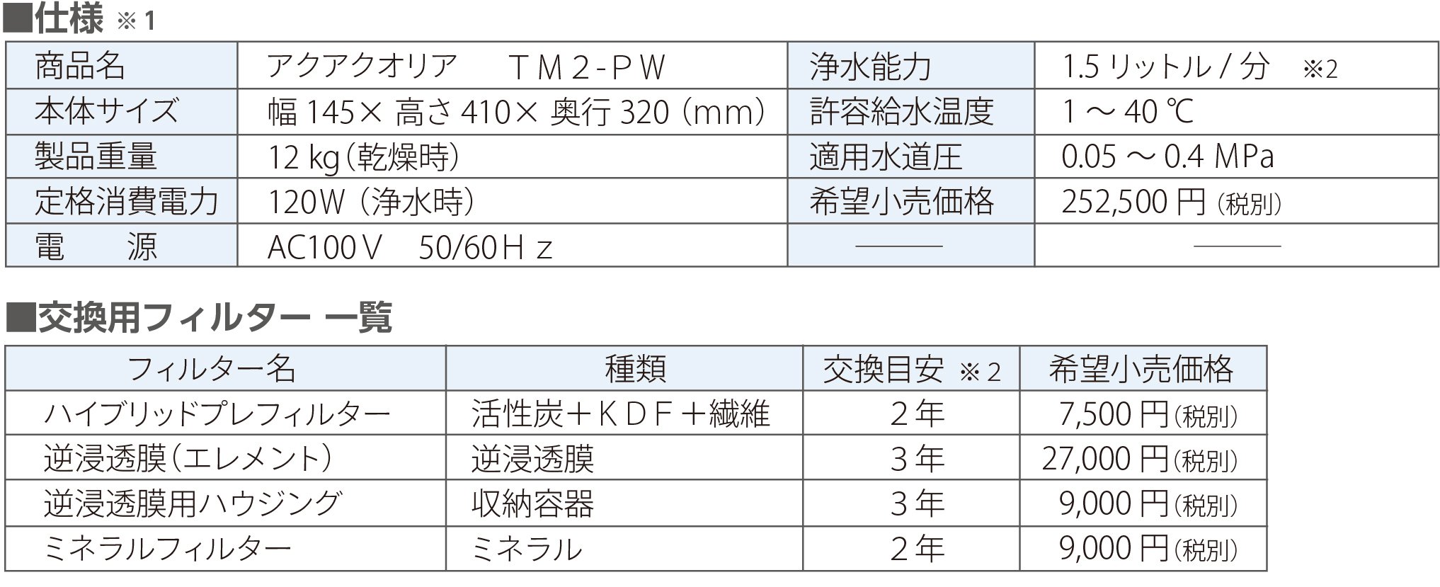 ※2.フィルター交換時期は、水質やご使用量によって異なります。